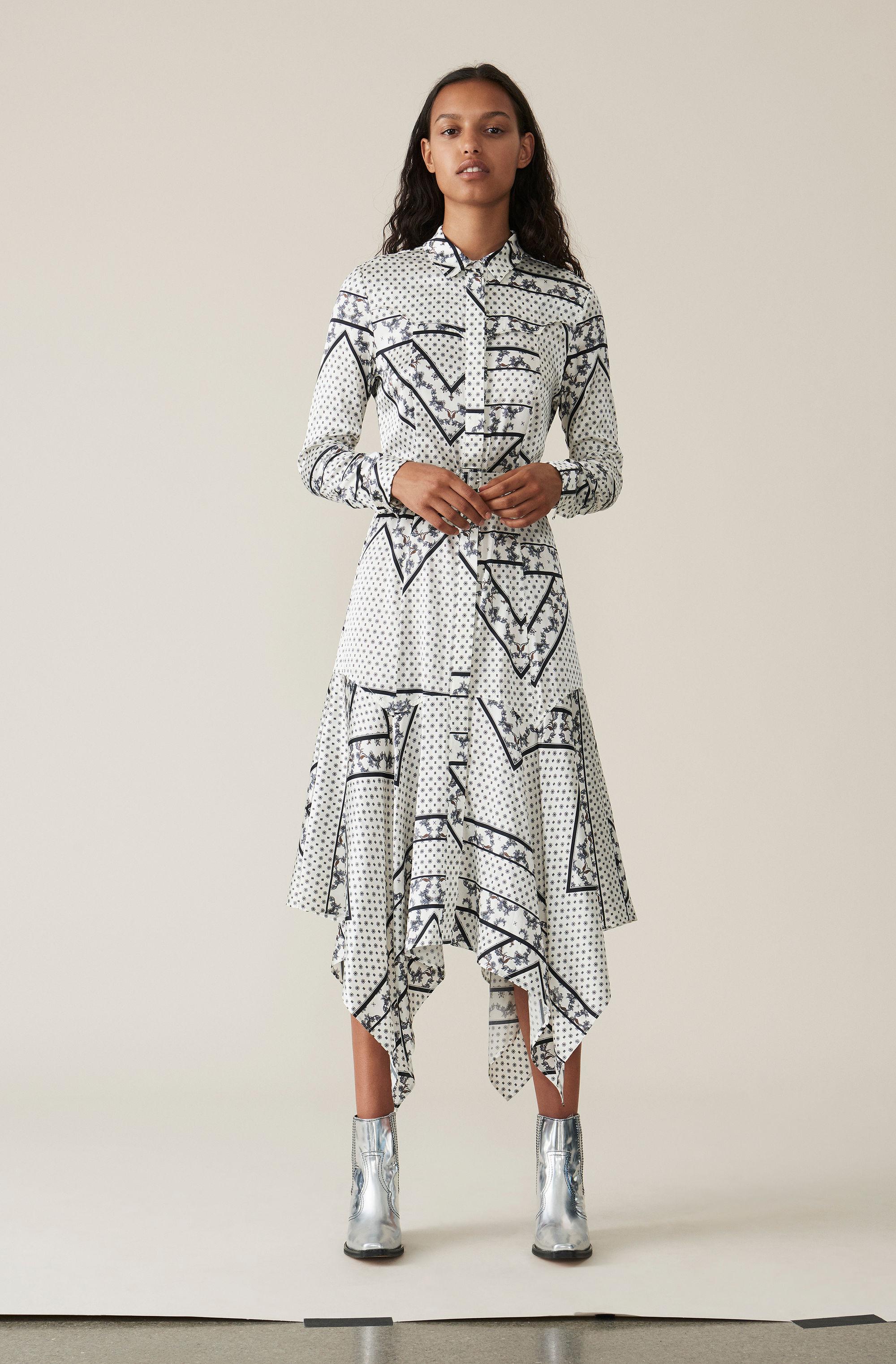 ganni printed georgette dress